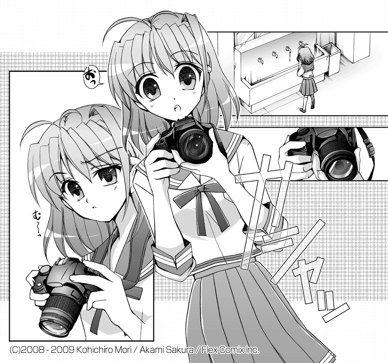 カメラの専門知識に関しては私自身が素人同然ということもあり、中々深く掘り下げることが難しいのですが、カメラ未体験の読者さんにもわかってもら えるように、ゆっくり物語に上手く取り込みながら表現できればと願ってます。説明と物語のバランスがなかなか難しい所ですが、ハルカを通じて読者さんと二 人三脚でカメラを身近に感じられたら嬉しいです。